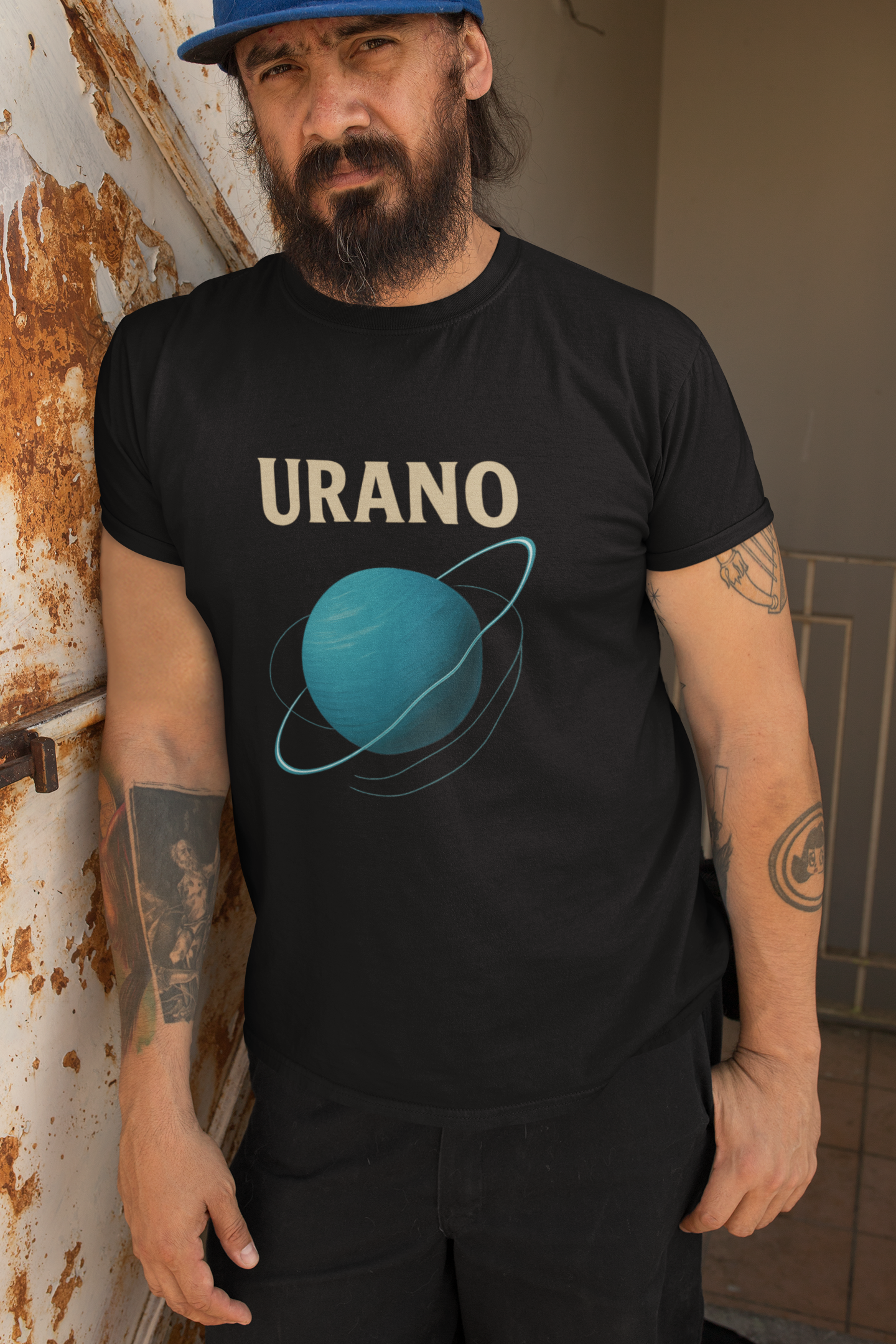 No centro, Urano — com sua presença elétrica, hipnótica e magnética. Seus anéis orbitais cortam o espaço em ângulos únicos, como quem não aceita o óbvio.